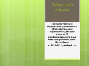 Публичный доклад Государственного бюджетного дошкольного образовательного учреждения детского сада № 25 комбинированного вида Невского района Санкт- Петербурга за 2020-2021 учебный год