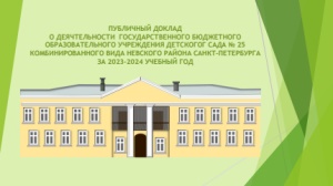ПУБЛИЧНЫЙ ДОКЛАД О ДЕЯЧТЕЛЬНОСТИ ГОСУДАРСТВЕННОГО БЮДЖЕТНОГО ОБРАЗОВАТЕЛЬНОГО УЧРЕЖДЕНИЯ ДЕТСКОГОГ САДА № 25 КОМБИНИРОВАННОГО ВИДА НЕВСКОГО РАЙОНА САНКТ-ПЕТЕРБУРГА ЗА 2023-2024 УЧЕБНЫЙ ГОД